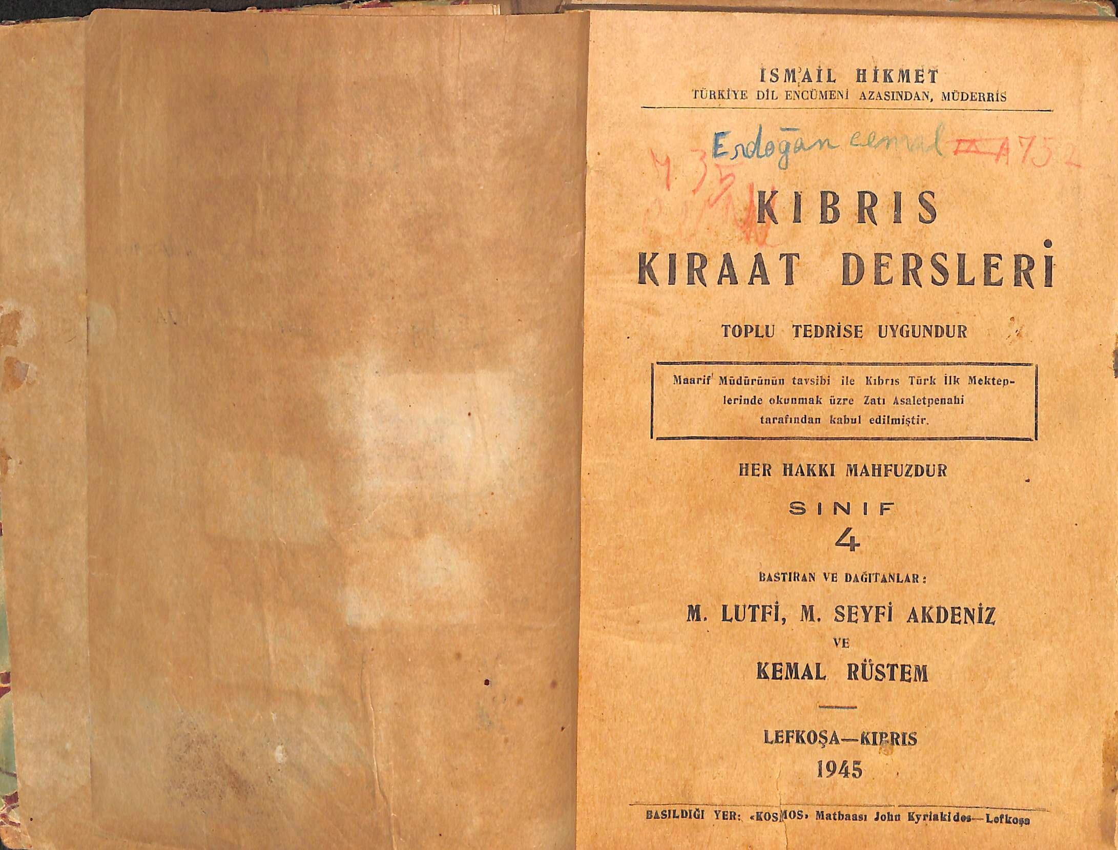 Kıbrıs'ta Latin alfabesini öğretmek için o sıralarda (1933-34) Lefkoşa Lisesi’nde ögretmenlik yapan Türkiye’nin tanınmış edebiyat tarihçisi İsmail Hikmet (Ertaylon) tarafından hazırlanan “Kıbrıs Türk Alfabesi” alfabe ve okuma kitabı.