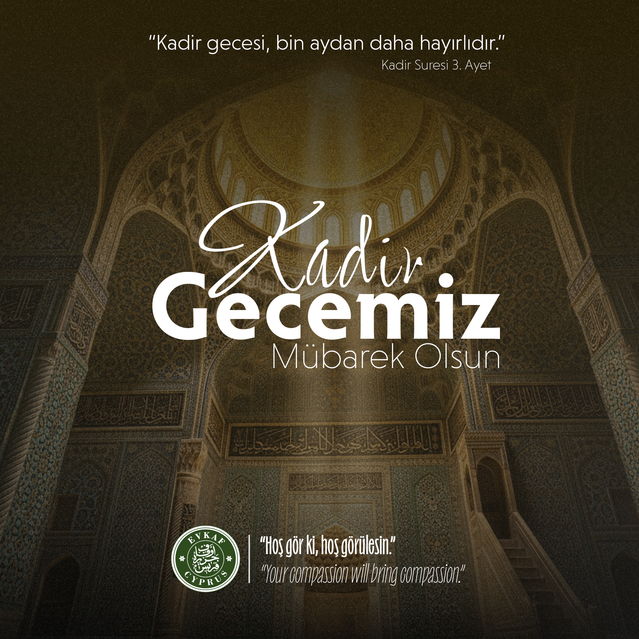 Bin aydan daha hayırlı olan Kadir Gecesi’ne ulaşmanın huzur ve mutluluğunu yaşıyoruz. Rahmet, bereket ve mağfiretin gönülleri kuşattığı bu mübarek gecenin; ülkemize, milletimize ve tüm İslam âlemine sağlık, huzur, barış ve hayırlar getirmesini temenni ederiz.