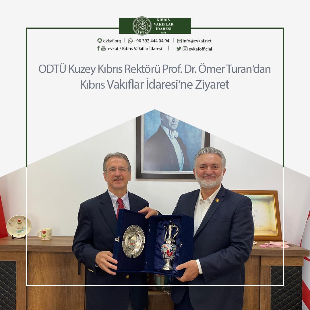 ODTÜ Kuzey Kıbrıs Rektörü Prof. Dr. Ömer Turan, Kıbrıs Vakıflar İdaresi Genel Müdürü Prof. Dr. İbrahim Benter‘i ziyaret etti. Ziyarette kurumlar arası işbirliği ve eğitim alanında yapılabilecekler ele alındı.